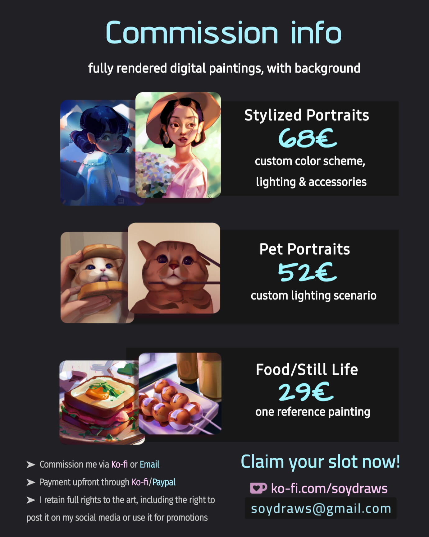 By commissioning me, you confirm that you have read and agree to these Terms of Service.Payment